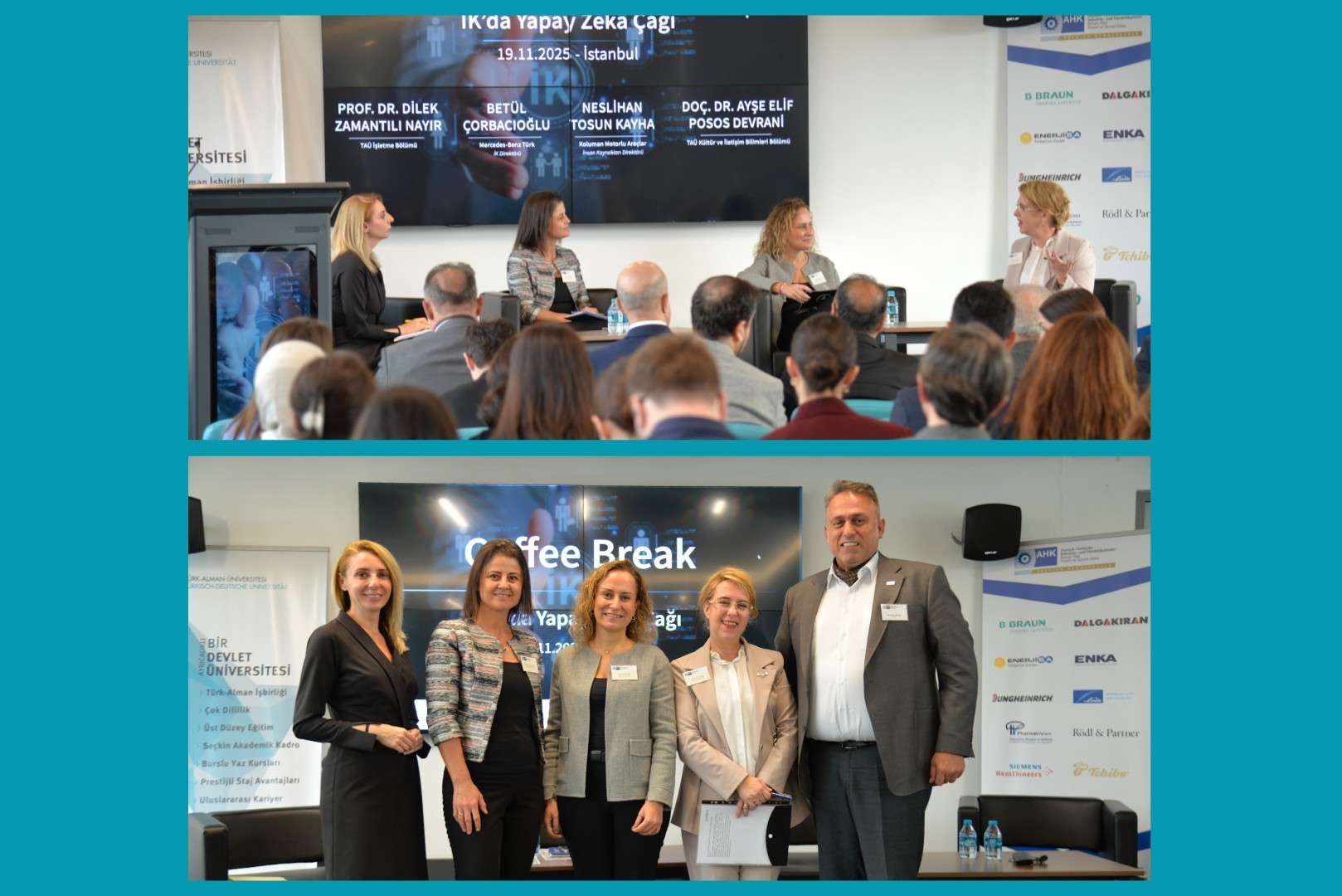 Üniversitemiz Dijital Dönüşüm Uygulama ve Araştırma Merkezi (TAÜ-DDUAM) ile Alman-Türk Ticaret ve Sanayi Odası (AHK Türkiye) İnsan Kaynakları (İK) Çalışma Grubu iş birliğinde düzenlenen “İK’de Yapay Zekâ Çağı – II. İnsan Kaynakları Zirvesi”, 19 Kasım 2025 tarihinde Yabancı Diller Yüksekokulu Konferans Salonu’nda gerçekleştirildi.